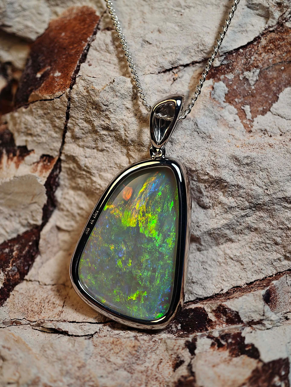 Dark Crystal Solid Opal Claw-Set Pendant – Green & Orange Flashes